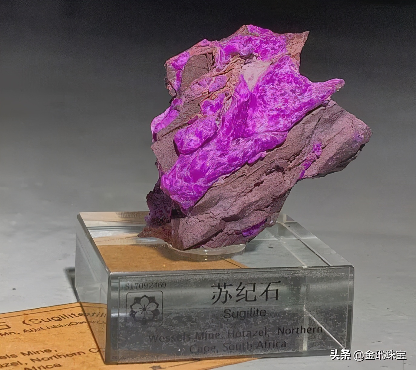 苏纪石是一种稀有宝石,被誉为千禧之石,是南非共和国的国石,也是公历二月份的生辰幸运石。苏纪石的外观呈各种不透明的深浅紫与紫红色交织。