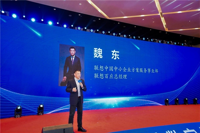 联想中国中小企业方案服务事业部联想百应总经理 魏东带来“混合式AI加速中国中小企业智能化转型”的主题分享,集中展示了面向中小企业的创新产品、方案及链式赋能案例。为切实助力中小企业转型,联想打造了涵盖AI终端、AI基础设施、AI解决方案与服务,为中小企业客户提供一站式高效的AI服务。